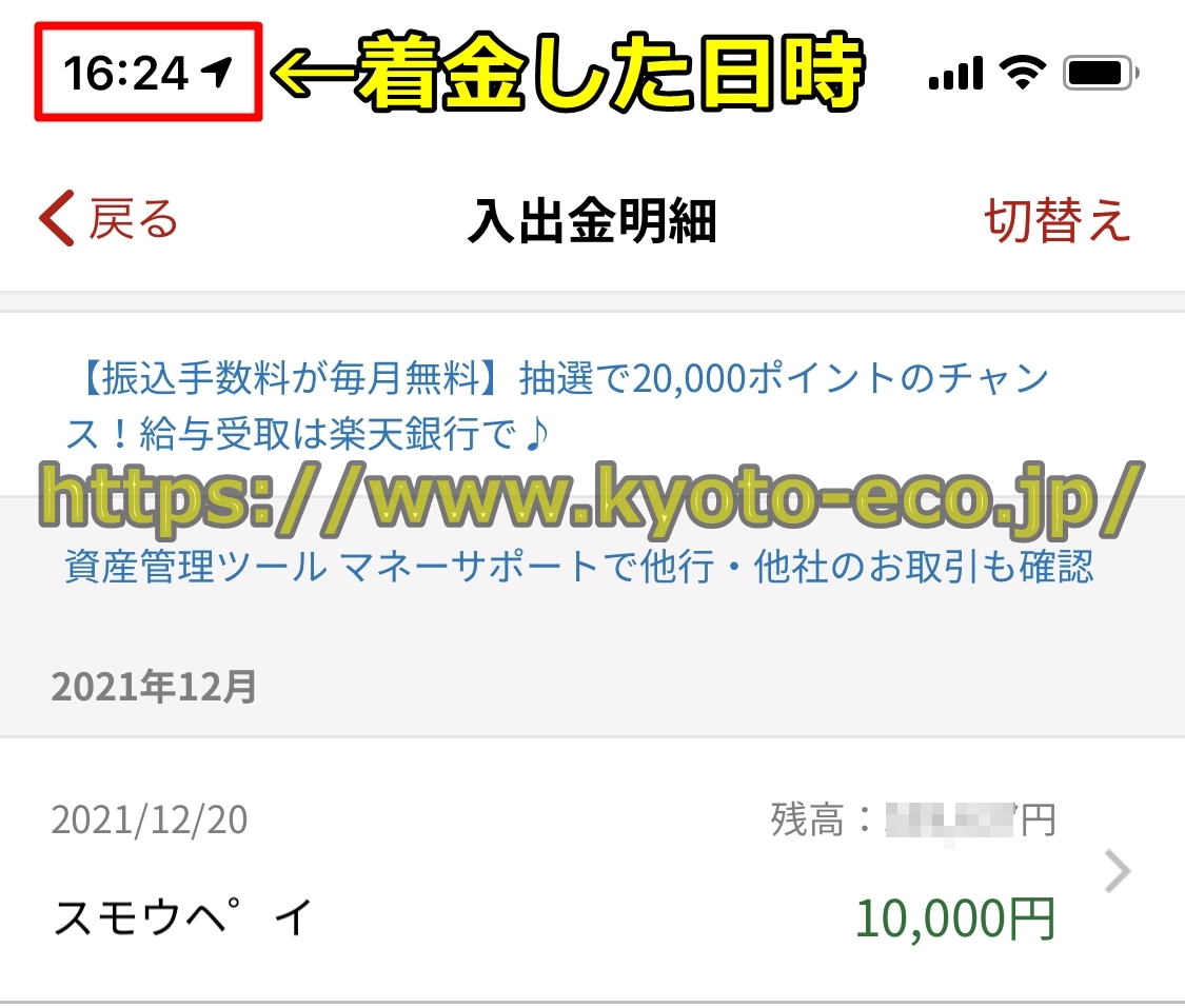 ・銀行口座への着金日時 2021/12/20 16:24